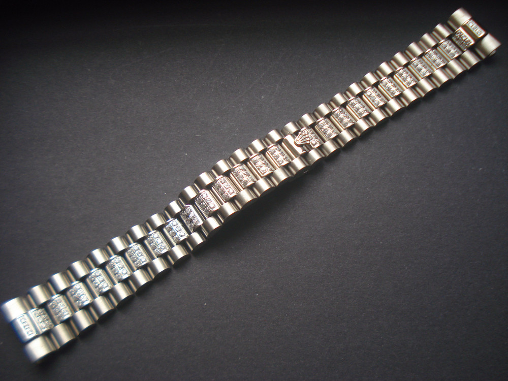 <> 1 pc high quality of president watch band bracelet marked ROLEX logo with CZ rhinestones on the cetner links for vintage ROLEX mens steel DAY-DATE watch in the diameter of 36mm with lugs size of 20mm and other watch of same style and size
