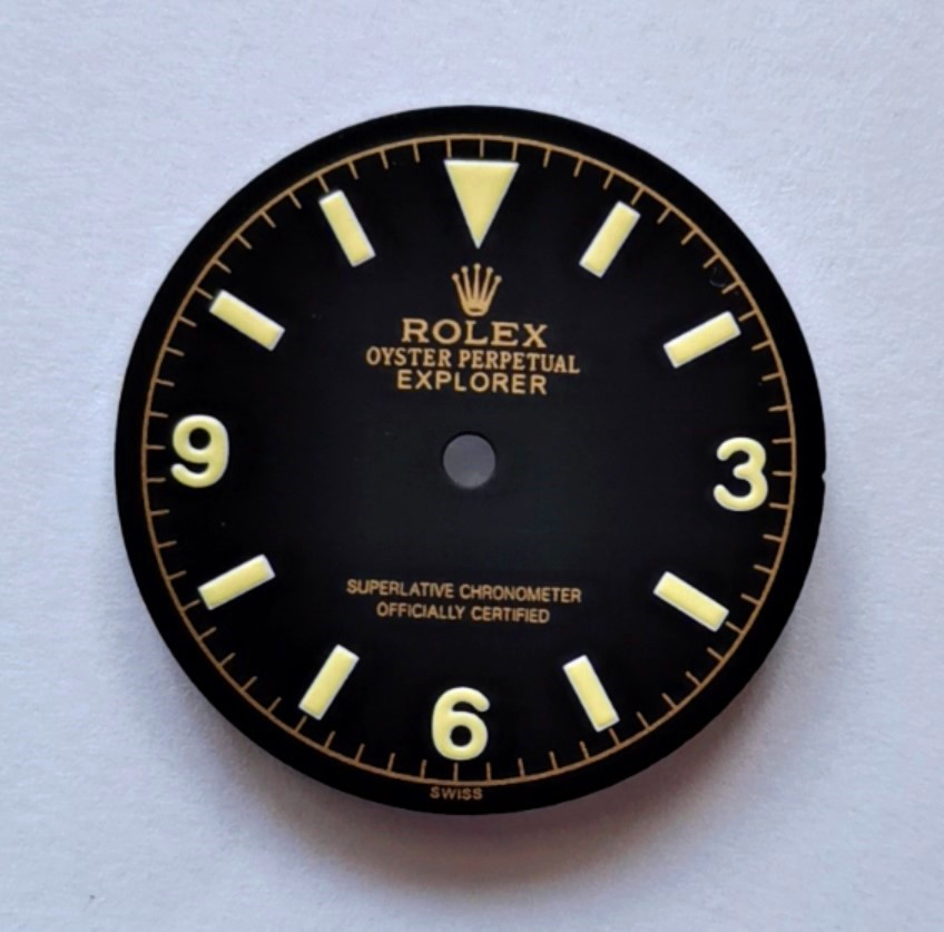 <> 1 pc vintage style of 1016 Rolex Branded black Explorer Gilt dial with super yellow luminous in the diameter of 28.5mm