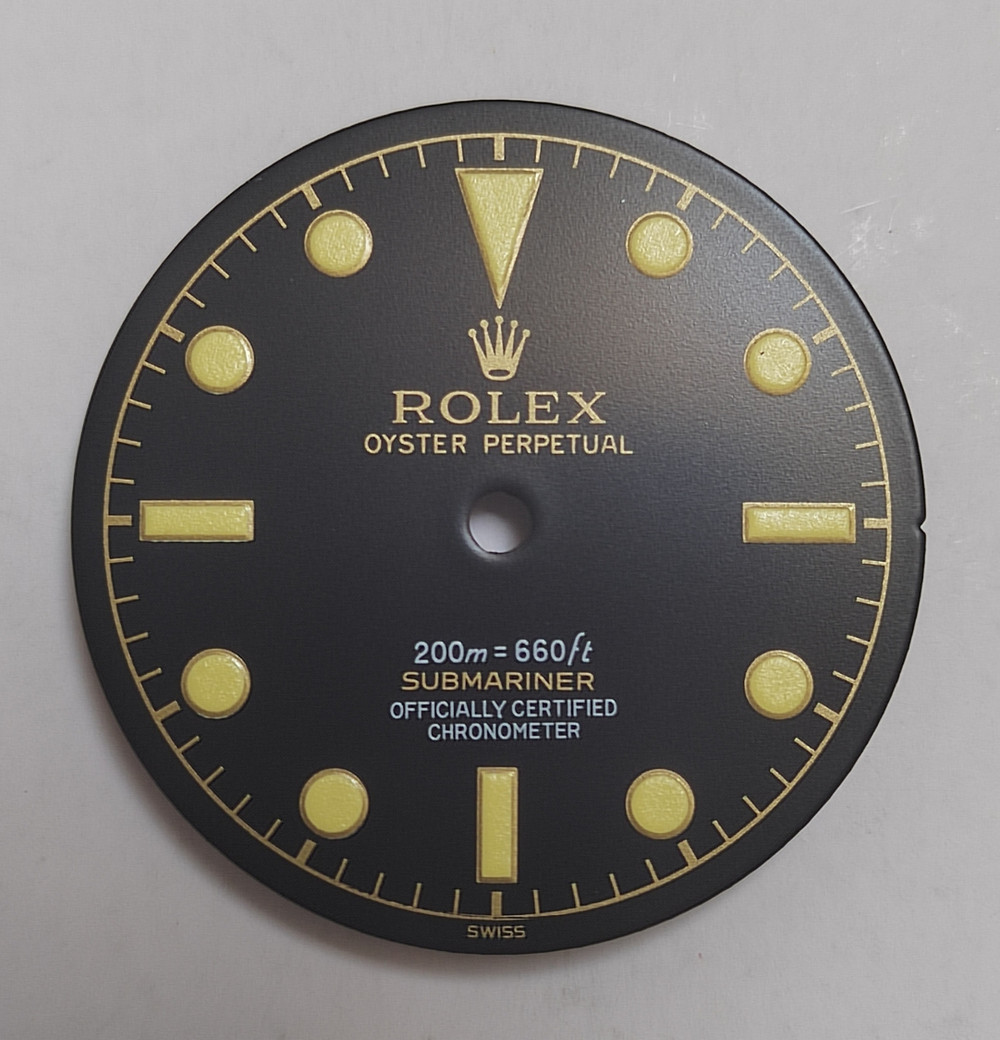 <> 1 pc vintage style of matt black 6538 James Bond gilt watch dial with yellow luminous, golden symbol and white text has no date window in the diameter of 29mm