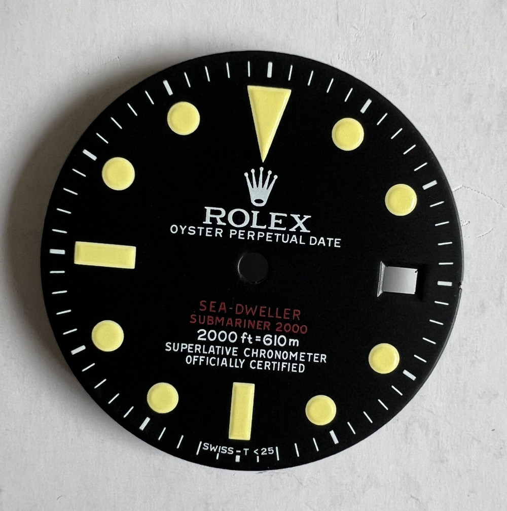 <> 1 pc vintage model of Rolex branded 1665 matt black SEA-DWELLER Submariner dial with double red "SUBMARINER 2000" & "SEA-DWELLER" and yellow luminova in the diameter of 29mm for steel watch
